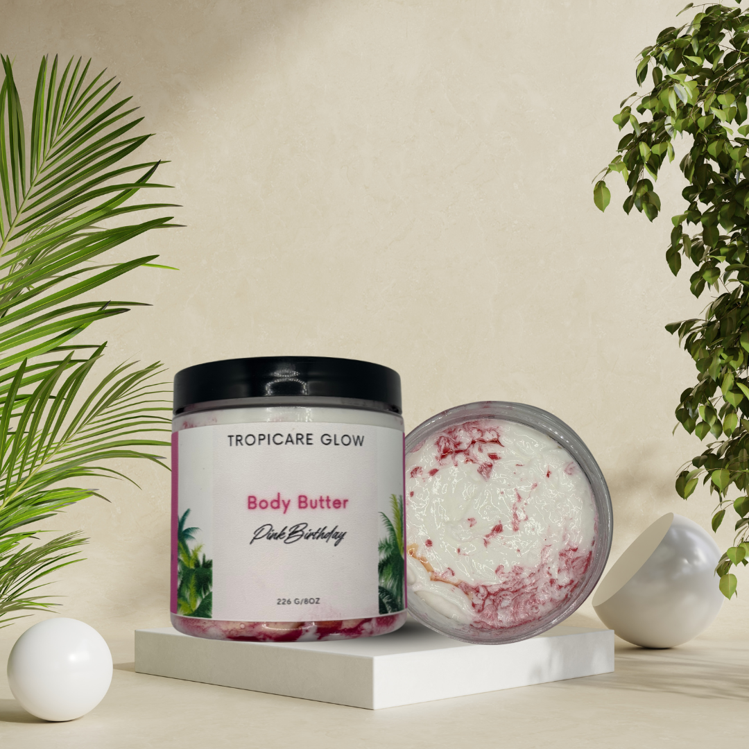 Infuse your skin with the fresh and fruity scents of Pink Birthday Body Butter. This luxurious formula combines crisp green apple, tangy pineapple, succulent melon, and luscious cherry pie notes in a sweet vanilla base. Experience the perfect blend of brightness, tropical vibes, and sugary indulgence. Perfect for a daily treat!